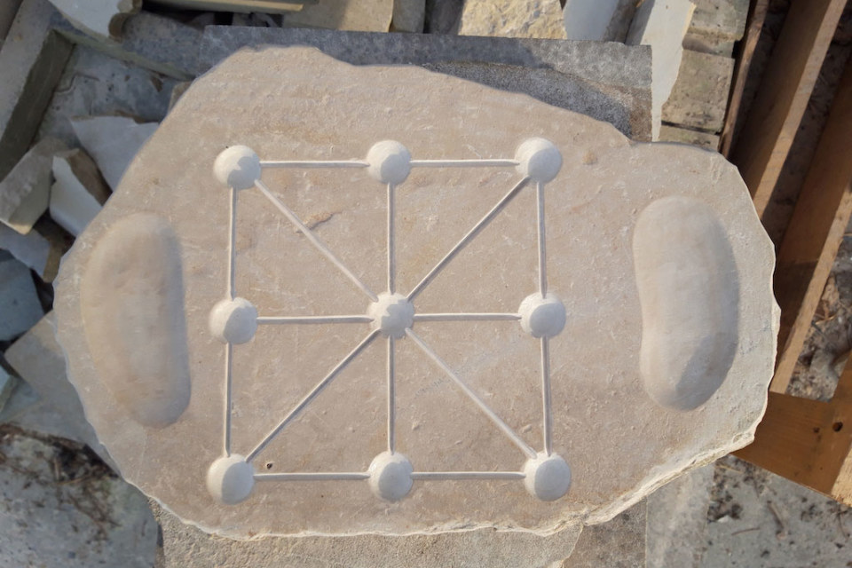 Reproducció en pedra del tradicional joc del tres en ratlla.